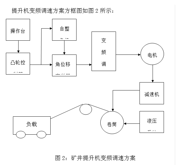 通過調(diào)研與論證,結(jié)合本公司礦井提升的現(xiàn)場實(shí)際情況,最終我公司技術(shù)中心做出決定,對提升機(jī)實(shí)施變頻調(diào)速改造,利用在機(jī)械行業(yè)中廣泛使用的自整角機(jī)來作為控制變頻器的速度給定。自整角機(jī)是通過角位移變送器輸出模擬量信號,操作工人搬動提升機(jī)操縱桿的角度,角位移變送器輸出相應(yīng)大小的模擬量信號,由此控制變頻器運(yùn)行頻率,進(jìn)而控制提升的運(yùn)行速度。這種操作方式還可用變頻器多段速控制,提升機(jī)只能在這幾種速度下運(yùn)行。而角位移變送器輸出的是連續(xù)的角位移變送器輸出模擬量信號,理論上提升機(jī)可在任意速度下運(yùn)行,操作起來會方便一些,且與原操作習(xí)慣相似,操作工人容易掌握。