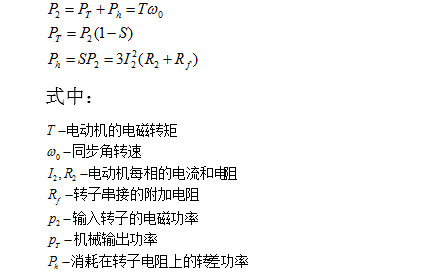 目前國內(nèi)各類礦山等提升機(jī)大都采用交流繞線式異步電動機(jī)轉(zhuǎn)子串電阻方式調(diào)速方案,使用交流接觸器改變轉(zhuǎn)子電阻來進(jìn)行速度段的切換。對于繞線式電機(jī),無論在起動?制動還是調(diào)速中,采用轉(zhuǎn)子串電阻方式均會帶來電能損耗。這種損耗隨著轉(zhuǎn)速的降低,轉(zhuǎn)差率S的增大而增大。繞線式電機(jī)的功率關(guān)系為: