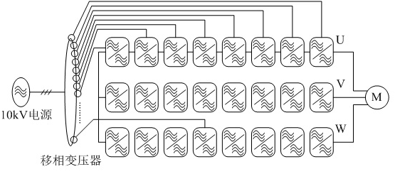 SBH系列高壓變頻器采取的拓?fù)浣Y(jié)構(gòu)方式為單元串聯(lián)型高壓變頻器,其為直接高-高變換電壓源型,變頻器基本原理如下圖2所示:
