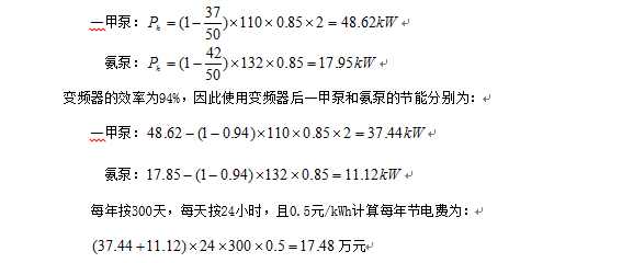 四、一甲泵、氨泵和氨水泵的變頻調(diào)速節(jié)能