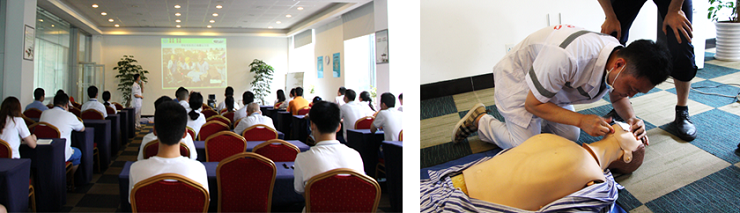6月15日,公司聘請現(xiàn)代醫(yī)院急救科專家到現(xiàn)場進行急救知識培訓,并針對員工提問作出專業(yè)的解答。