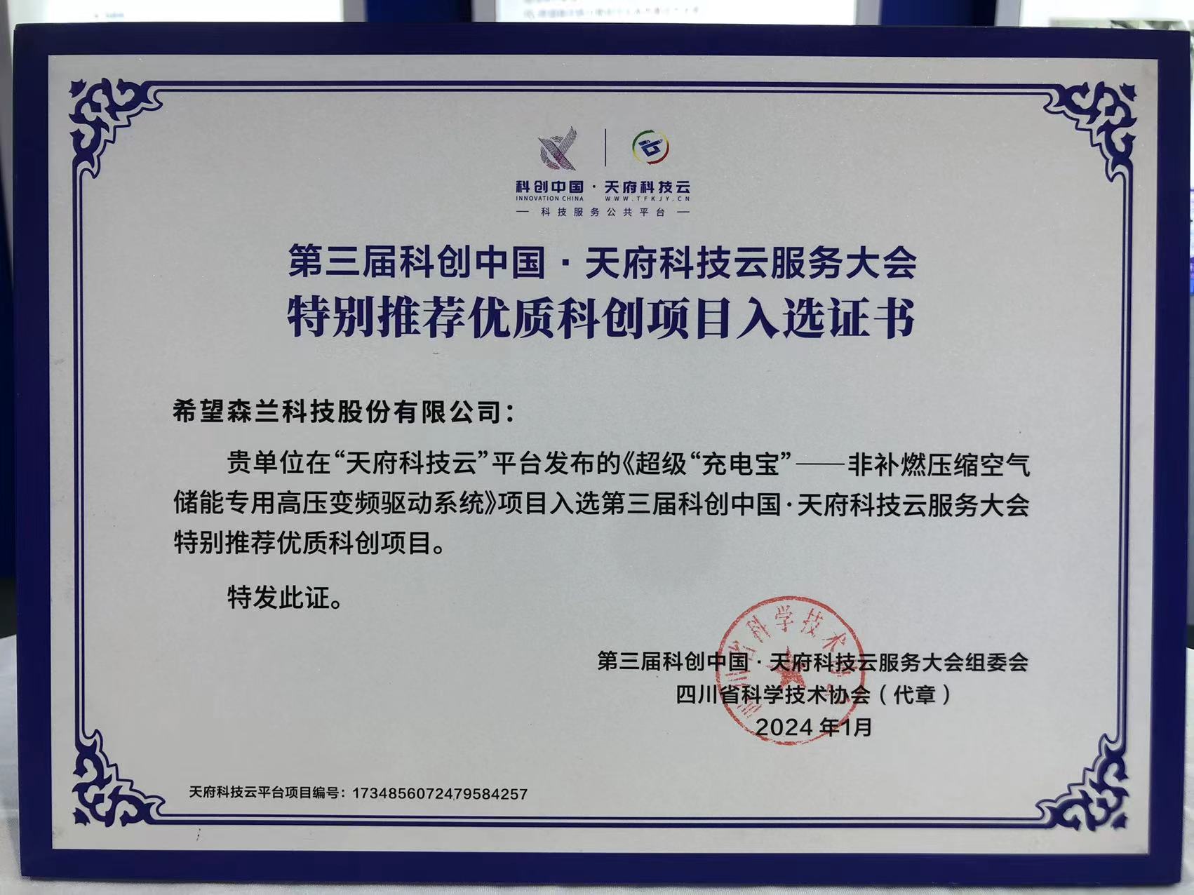 本屆大會(huì)面向大院大所大企業(yè)等征集到科創(chuàng)項(xiàng)目8700個(gè),希望森蘭科技股份有限公司作為國(guó)內(nèi)專業(yè)從事傳動(dòng)控制技術(shù)研究的領(lǐng)軍企業(yè),憑借硬核解決方案成功吸引了大會(huì)的關(guān)注。不僅被選為本屆重大高新技術(shù)待推廣項(xiàng)目,還榮獲了“特別推薦優(yōu)質(zhì)科創(chuàng)項(xiàng)目”獎(jiǎng)項(xiàng)。
