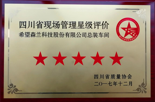 2018年1月4日,公司總裝車間被評(píng)為“四川省現(xiàn)場(chǎng)管理星級(jí)評(píng)價(jià)五星級(jí)現(xiàn)場(chǎng)”。同期榮獲五星級(jí)現(xiàn)場(chǎng)的公司還有通威太陽(yáng)能(成都)有限公司、中國(guó)核動(dòng)力研究設(shè)計(jì)院設(shè)計(jì)所、中國(guó)兵器裝備集團(tuán)自動(dòng)化研究所。