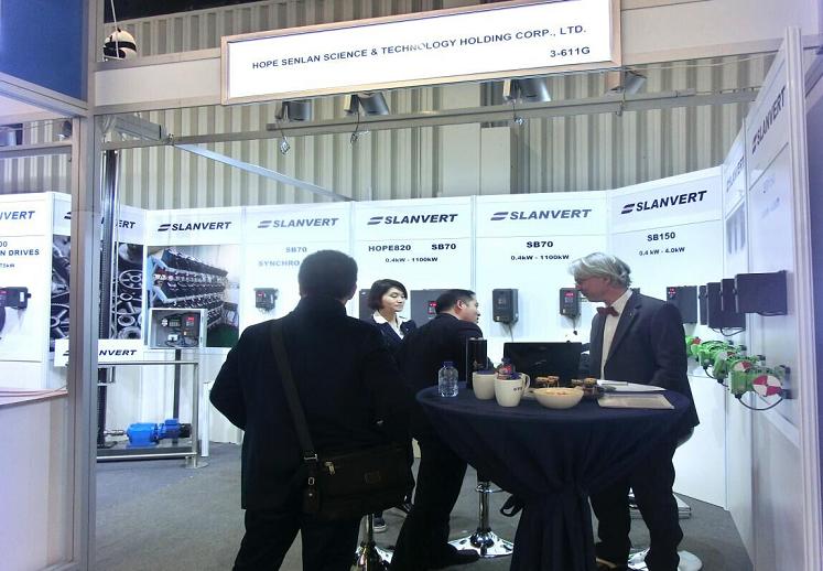 2015年11月24日~2015年11月26日,“德國(guó)紐倫堡工業(yè)自動(dòng)化展”在德國(guó)紐倫堡國(guó)際展覽中心順利開(kāi)展,本次展會(huì)吸引了全球電氣自動(dòng)化系統(tǒng)及元器件領(lǐng)域的知名企業(yè)參加,包括西門(mén)子、ABB、菲尼克斯等電氣巨頭。希望森蘭作為國(guó)內(nèi)專業(yè)的變頻器生產(chǎn)廠商也參加了此次展會(huì),在本次展會(huì)上,除展出常規(guī)的SB70、SB200等系列產(chǎn)品外,還首次向全球推出了希望森蘭最新系列的產(chǎn)品,包括:全新一代HOPE800系列高性能矢量控制型變頻器、SB150緊湊型低壓變頻器、高防護(hù)等級(jí)SB71系列防塵變頻器、SBH系列皮帶機(jī)專用高壓變頻器等。